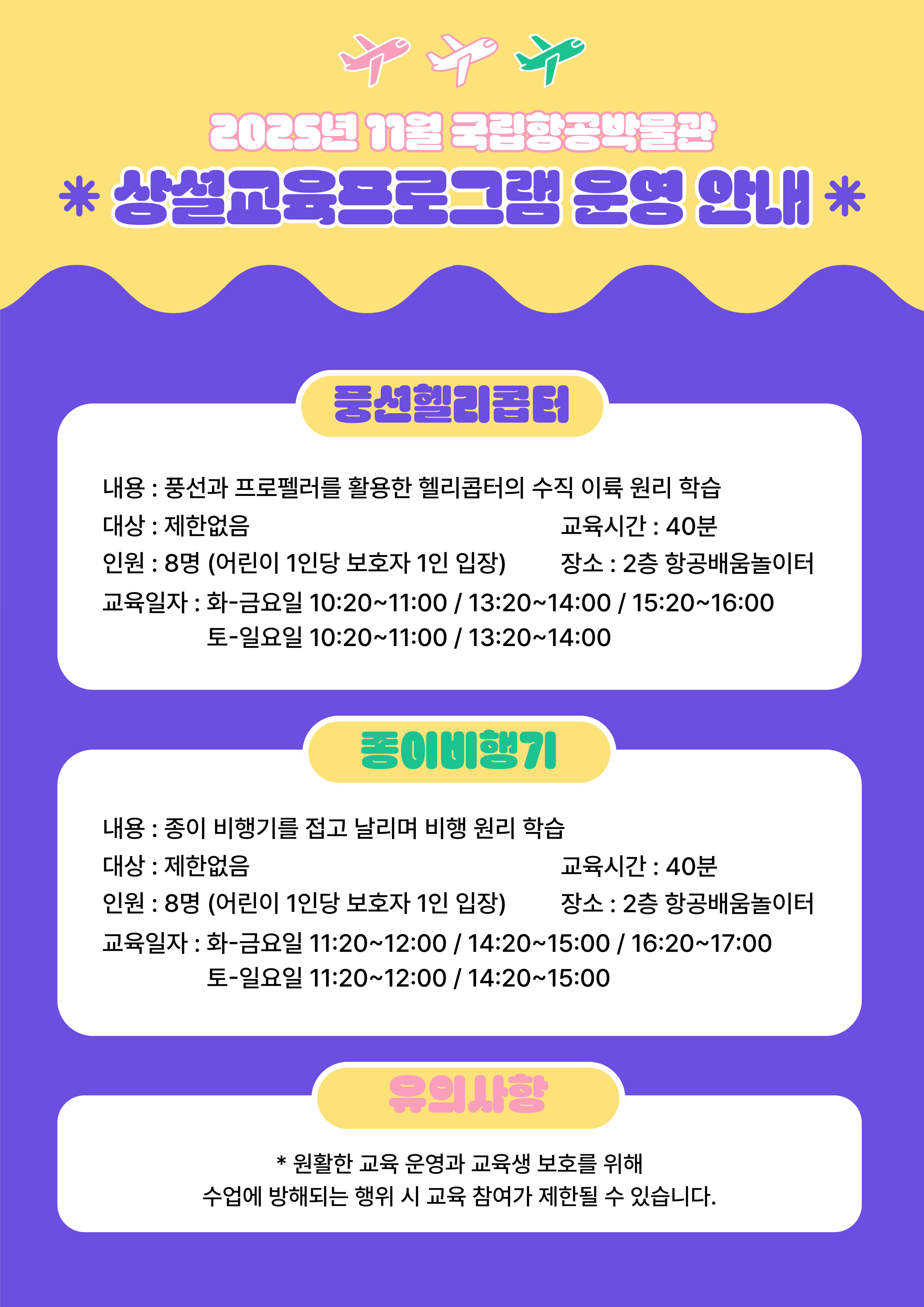 2025년 국립항공박물관 11월 정규 교육 예약방법 및 프로그램 안내 (2025.11.1~11.30.)