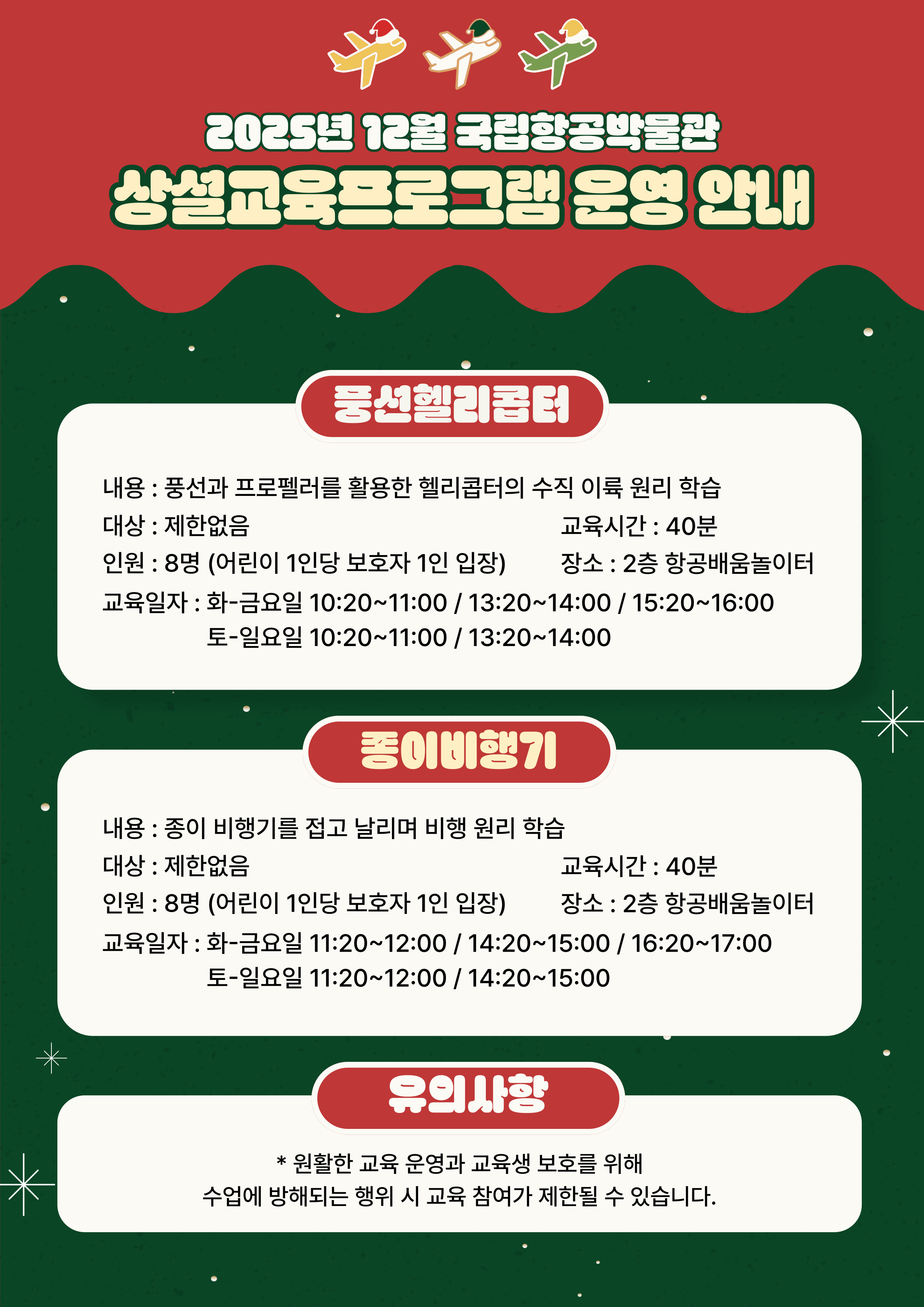 2025년 국립항공박물관 12월 정규 교육 예약방법 및 프로그램 안내 (2025.12.2.~12.31.)