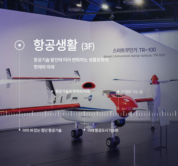 An exhibition space presenting consequential technological development in aviation, as well as diverse next-generation aviation technology.
