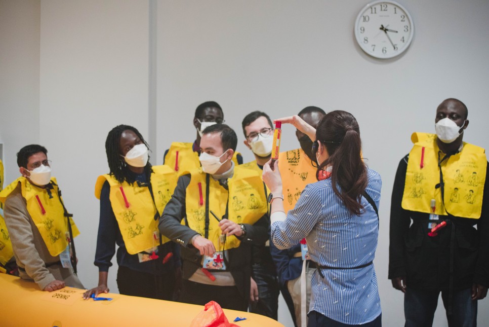또한, 구명조끼를 착용해보며 비상착수 시 대처방법에 대해 배웠습니다.