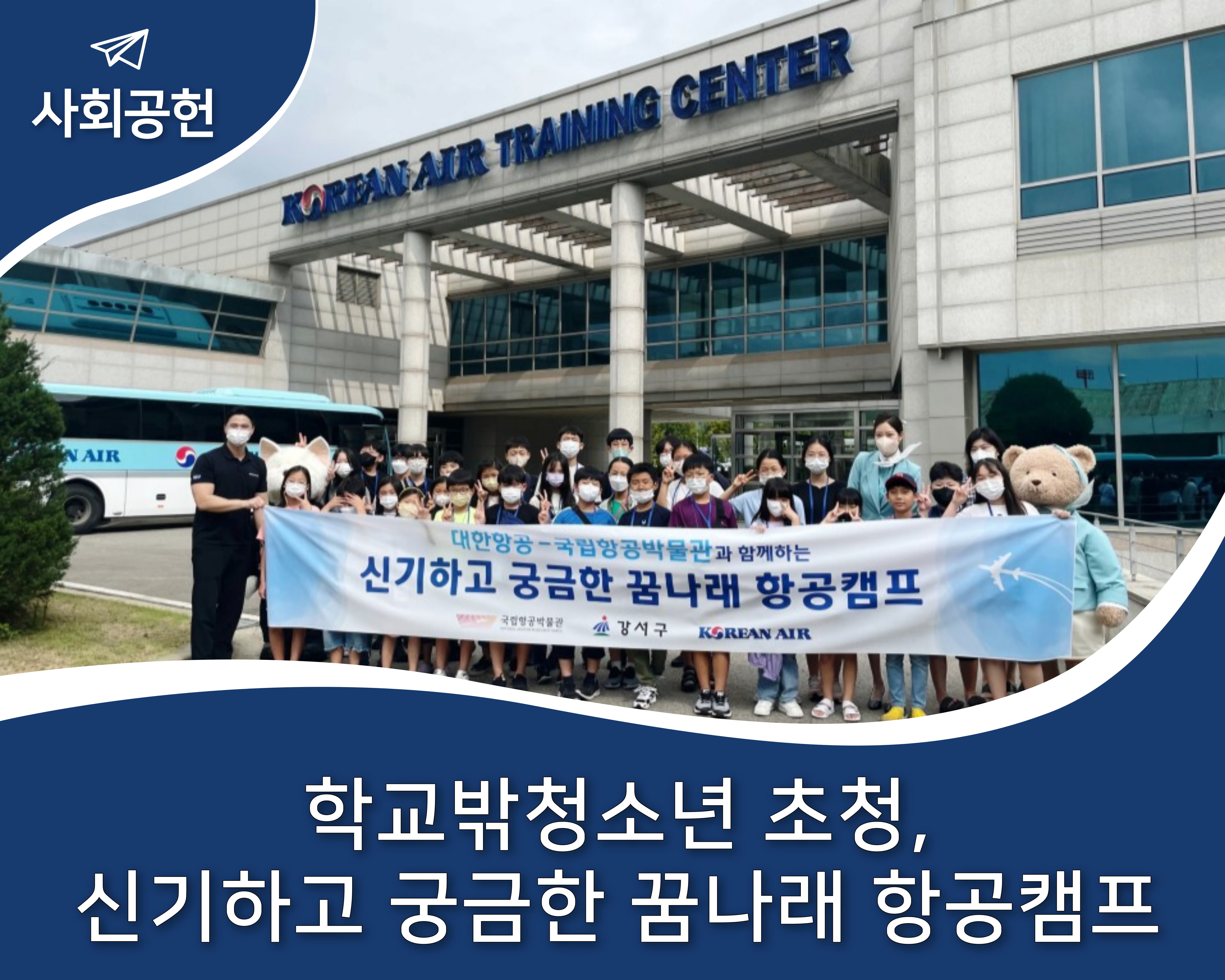 초청된 청소년들은 국립항공박물관 항공역사관 관람, 항공레포츠체험, 조종관체체험을 한 후, 대한항공에서 정비격납고 및 객실훈련원 투어를 했습니다.