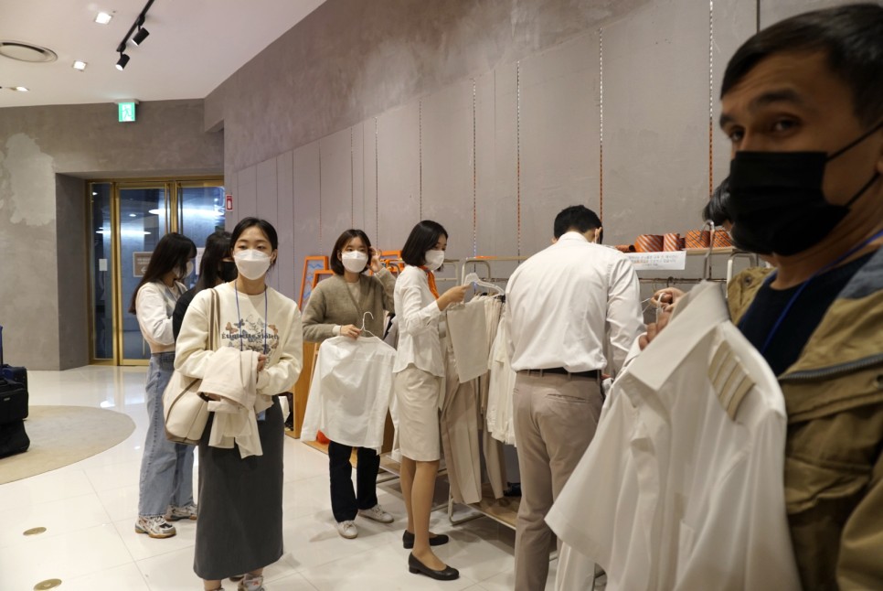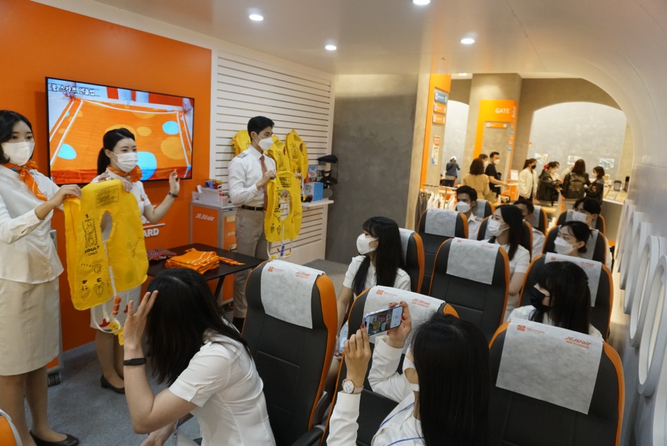 먼저 유학생분들은 제주항공 승무원의 유니폼을 입어보았습니다.