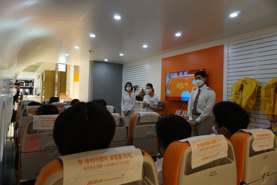 그리고 기내에서 지쳐야 할 안전수칙과 구명조끼 착용법 등을 배웠습니다.