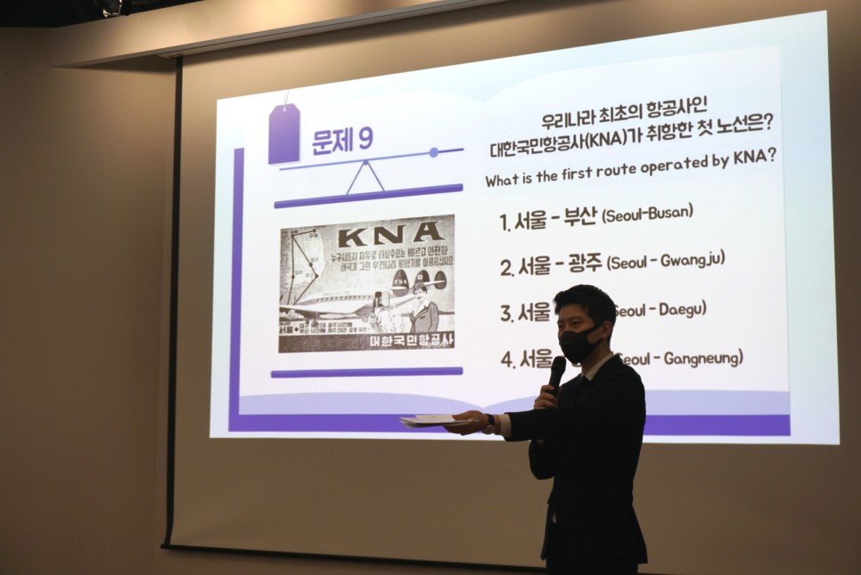 이후 도서관에 다시 모인 친구들은 이정섭 연합뉴스 아나운서님이 진행하시는 항공 퀴즈타임에 함께했습니다.