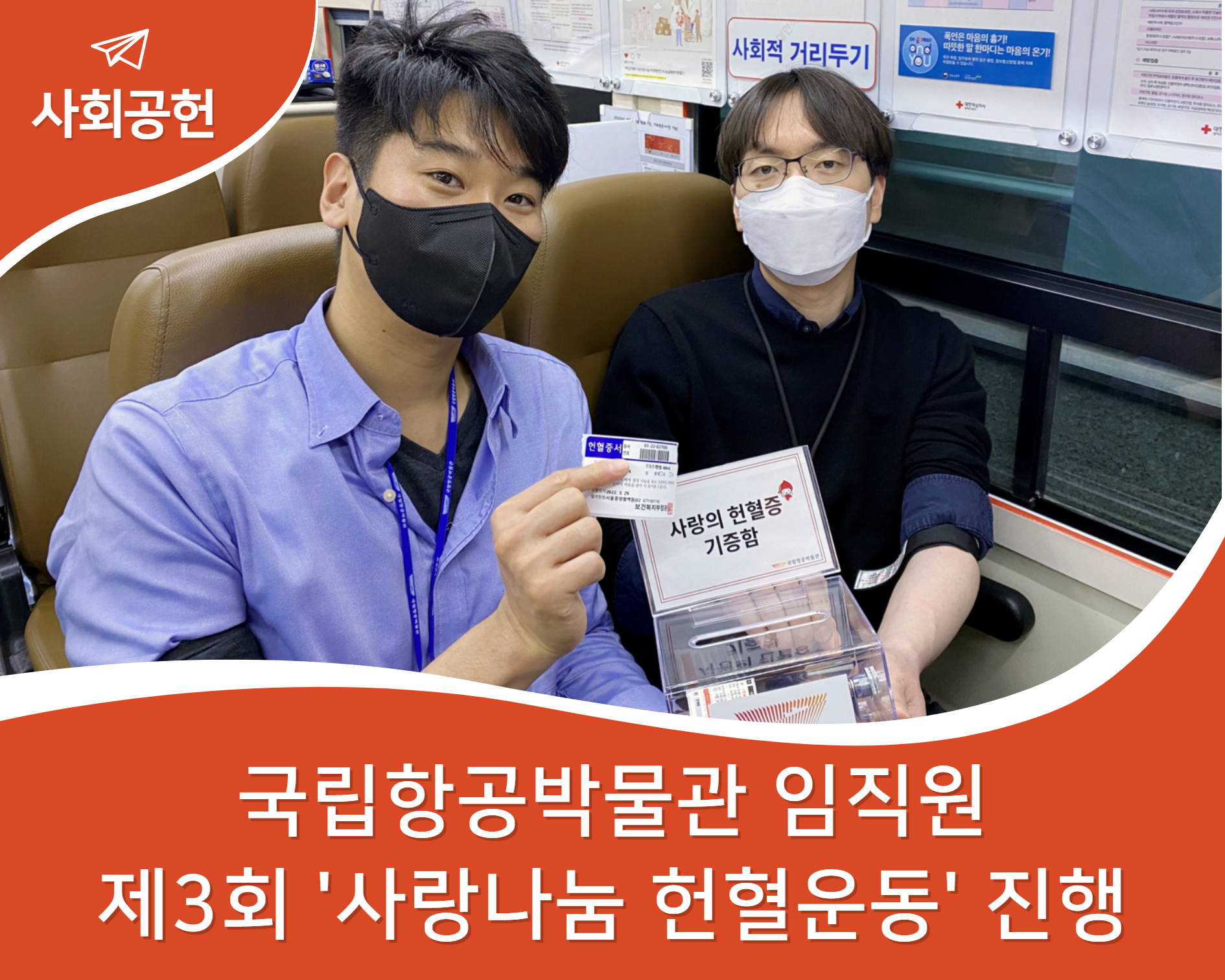 국립항공박물관은 3월 29일(화), 임직원이 참가하는 제3회 '사랑나눔 헌혈운동'을 진행하였습니다.