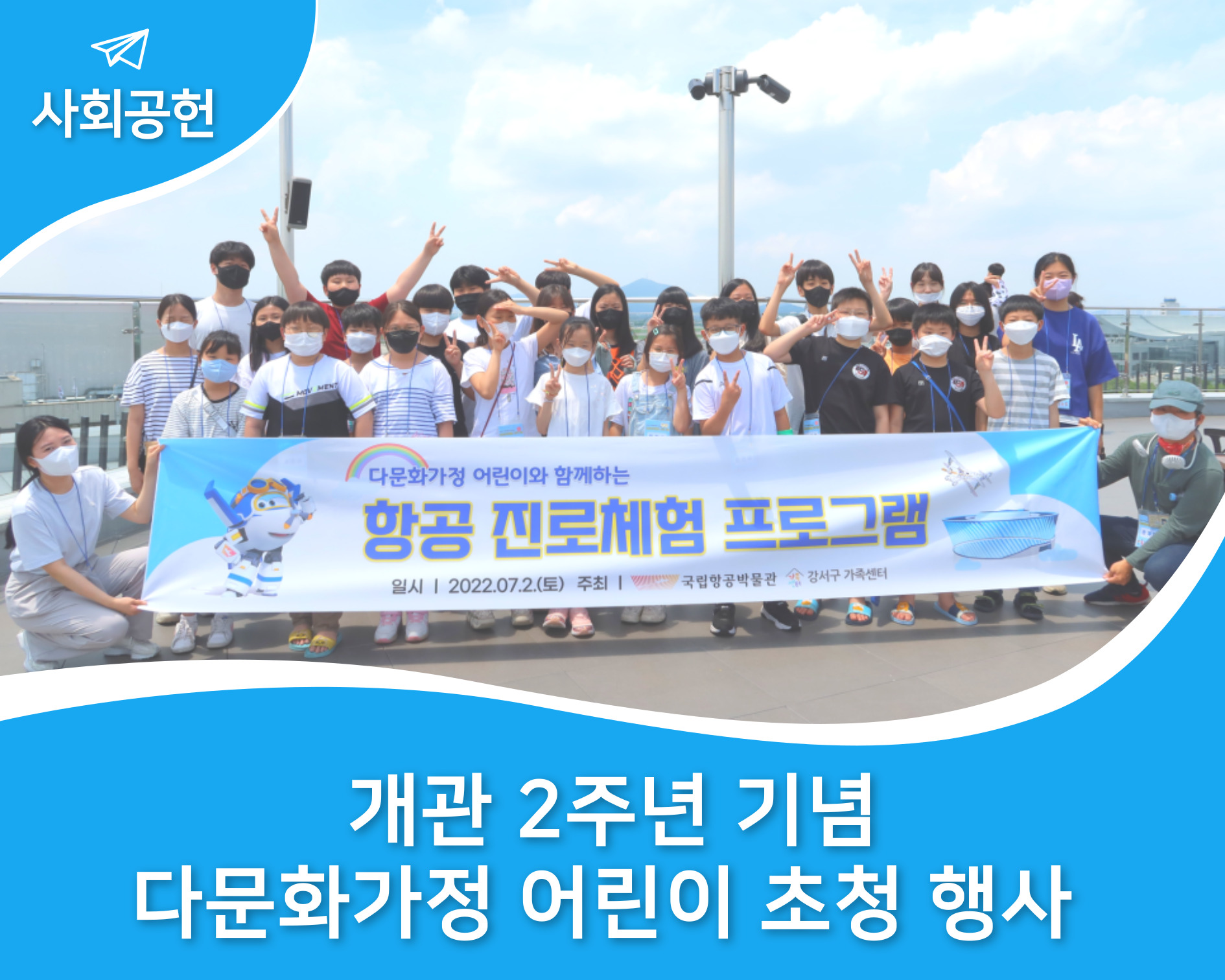 국립항공박물관은 이번 개관 2주년을 기념하여, 지난 7월 2일, 강서구 다문화가정 어린이 30명을 초청하여 '박물관 전시체험 프로그램'을 진행했습니다.