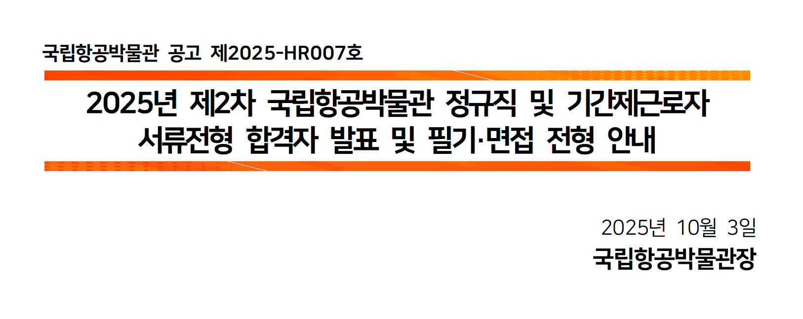 2025년 제2차 국립항공박물관 정규직 및 기간제근로자 서류전형 합격자 발표 및 필기·면접 전형 안내