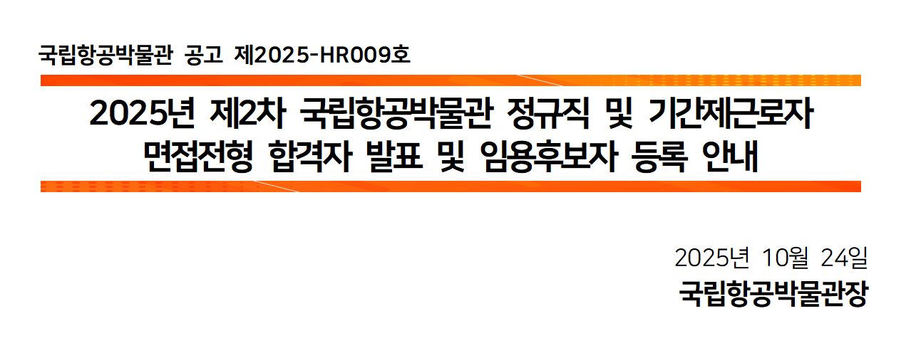 [채용] 2025년 제2차 국립항공박물관 정규직 및 기간제 근로자(육아휴직자 대체) 채용 면접전형 합격자 발표 및 임용후보자 등록 안내