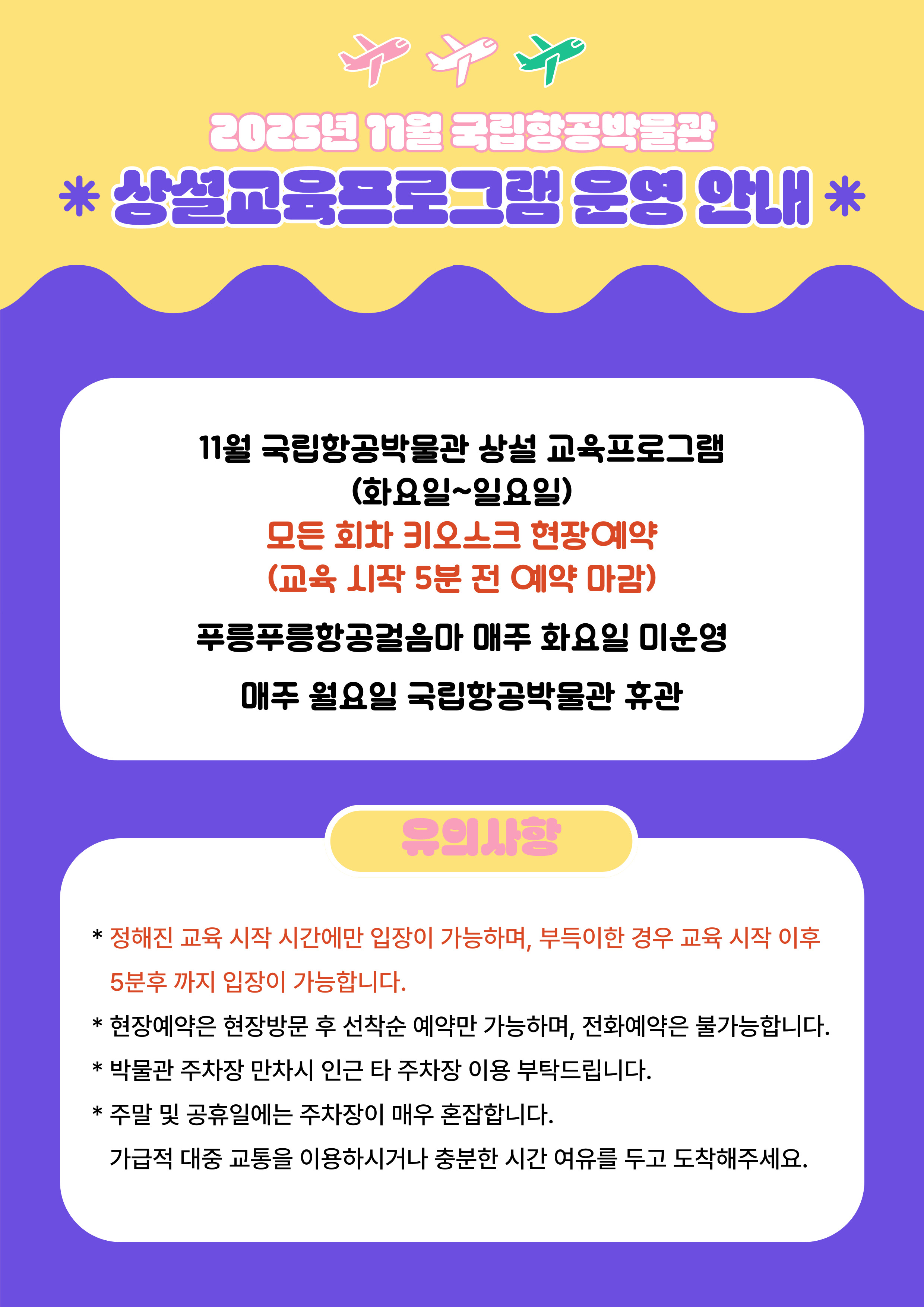 2025년 국립항공박물관 11월 정규 교육 예약방법 및 프로그램 안내 (2025.11.1~11.30.)