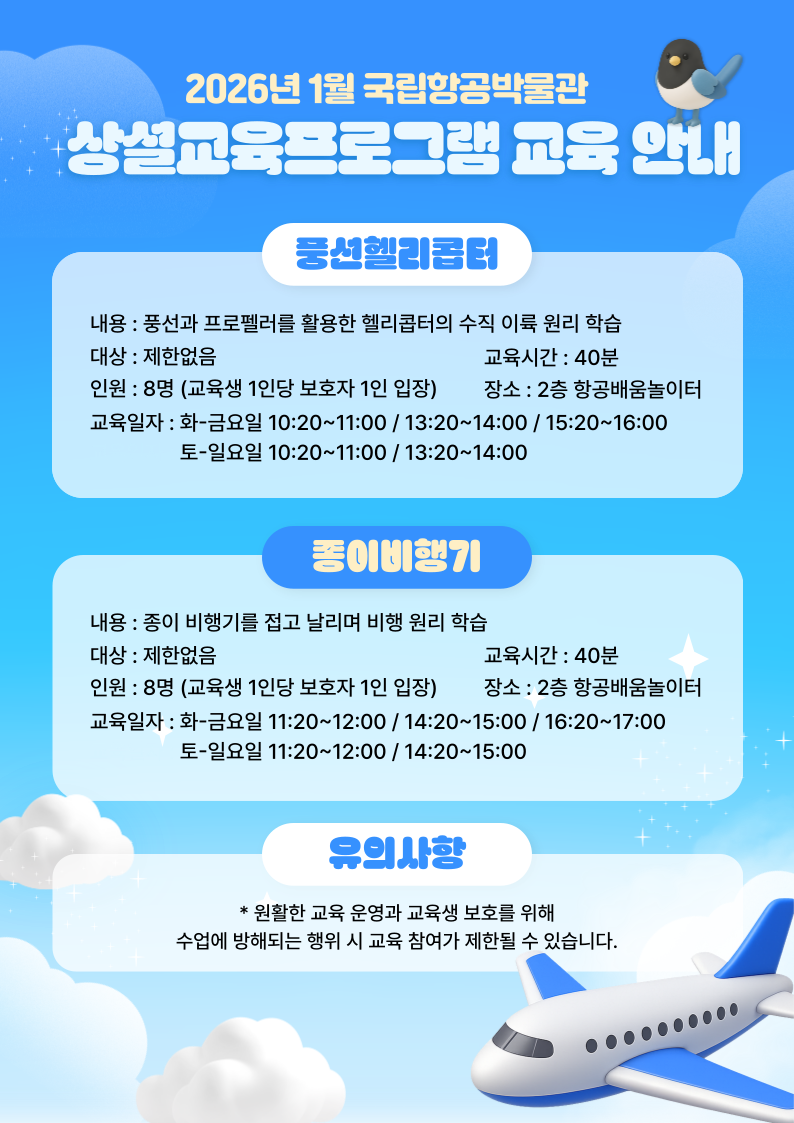 2026년 국립항공박물관 1월 정규 교육 예약방법 및 프로그램 안내 (2026.1.2.~1.31.)