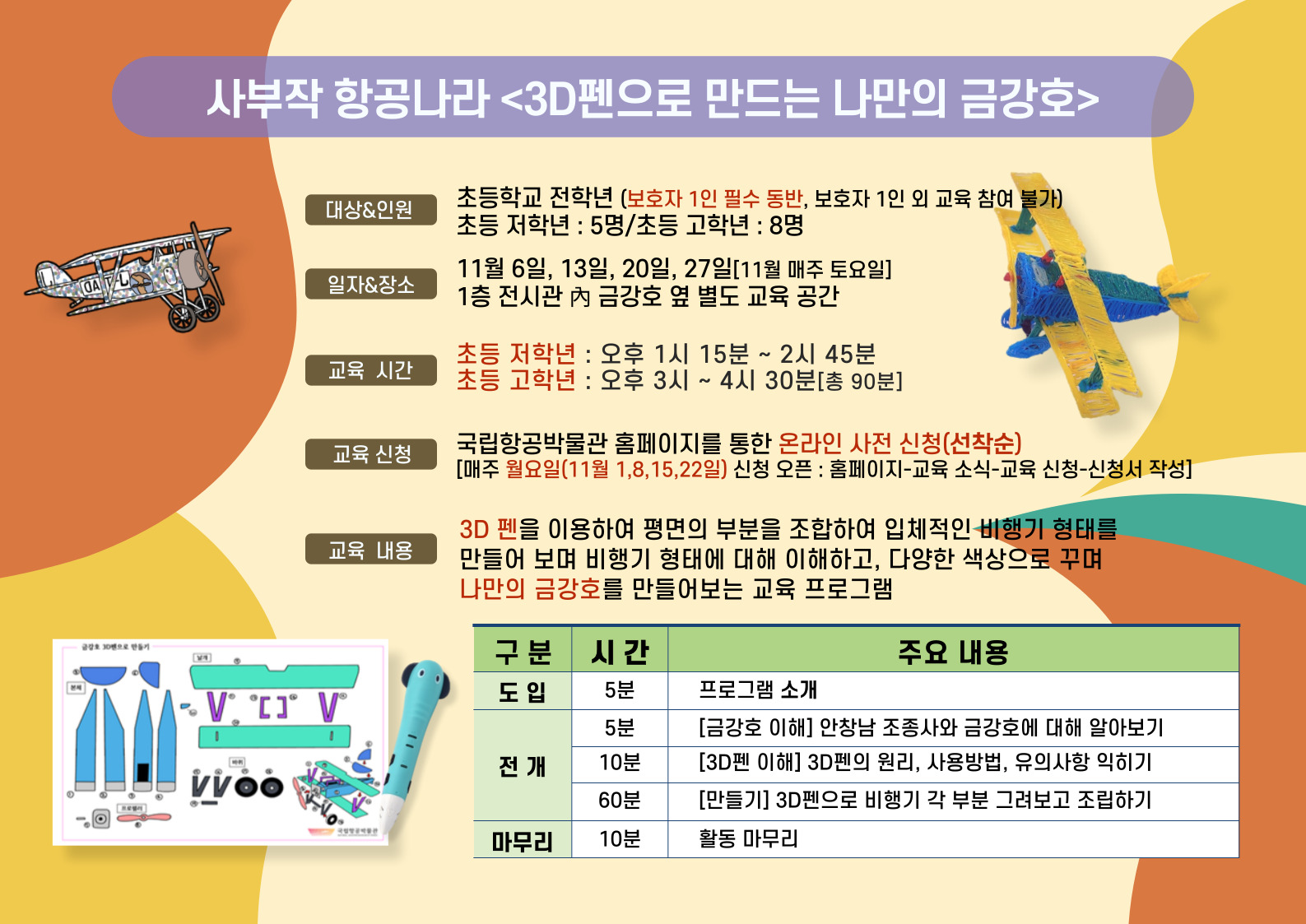 [11월 6일] 국립항공박물관 현장 교육 신청(3D펜으로 만드는 나만의 금강호)[마감]